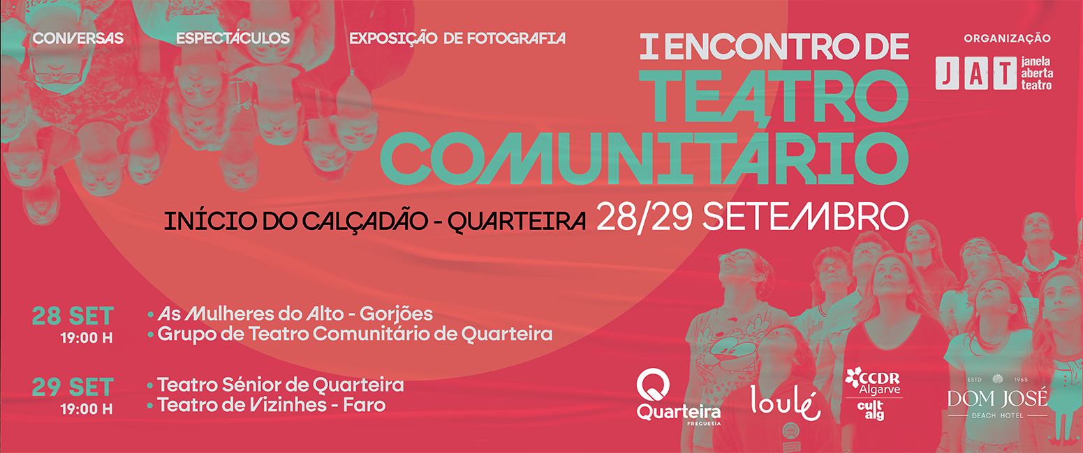 Nos dias 28 e 29 de Setembro, na marginal de Quarteira no Algarve, entre o mar o pôr-do-sol, o Iº Encontro de Teatro Comunitário ofereceu à comunidade de todas as idades e nacionalidades, um intercâmbio cultural e criativo através de espectáculos, conversas e convívios gerando conhecimento, intercâmbio de ideias, identidades, cooperação e humanismo.