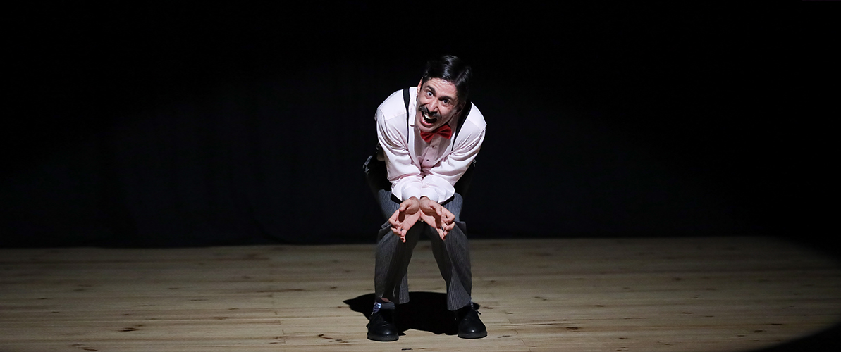 Proposta elegante e original, que rende homenagem ao Teatro Físico e Mimo. Gostamos de defini-lo “paisagem cénico”, sendo um espectáculo composto por duas peças, os solos ‘Filhos da evolução’ e ‘Cocktail’.