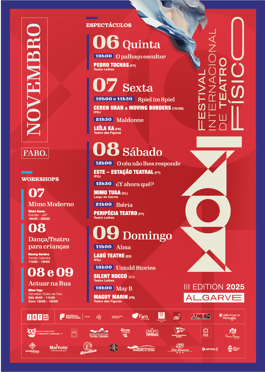 A cidade de Faro volta a acolher o MOMI – Festival Internacional de Teatro Físico – Algarve, evento que se tem vindo a afirmar como um dos mais relevantes palcos para a criação contemporânea em Portugal.