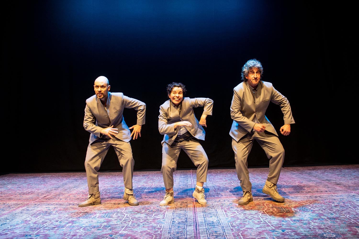 Três atores dos dois lados da fronteira sobem ao palco com música ao vivo, transformando o espaço cénico num lugar de riso, memória e reflexão.
